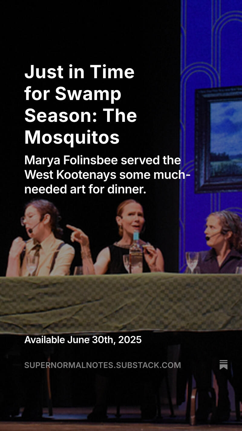 An absurd comedy of manners with an existential heart. Written and directed by Slocan Valley playwright Marya Folinsbee.