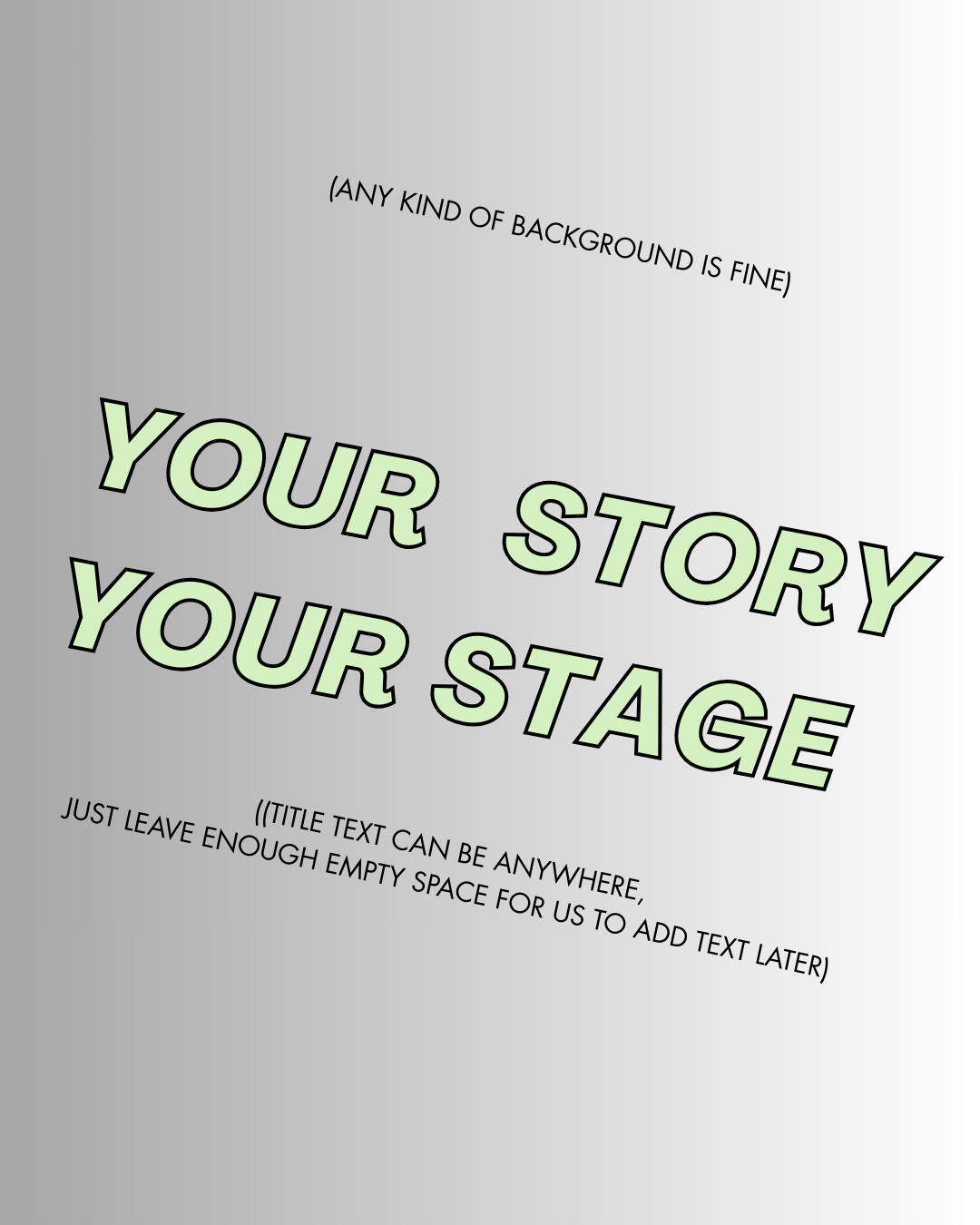 Design should have the words "Your Story, Your Stage" on it, with enough space left for us to add other event info (see sample design below these guidelines)